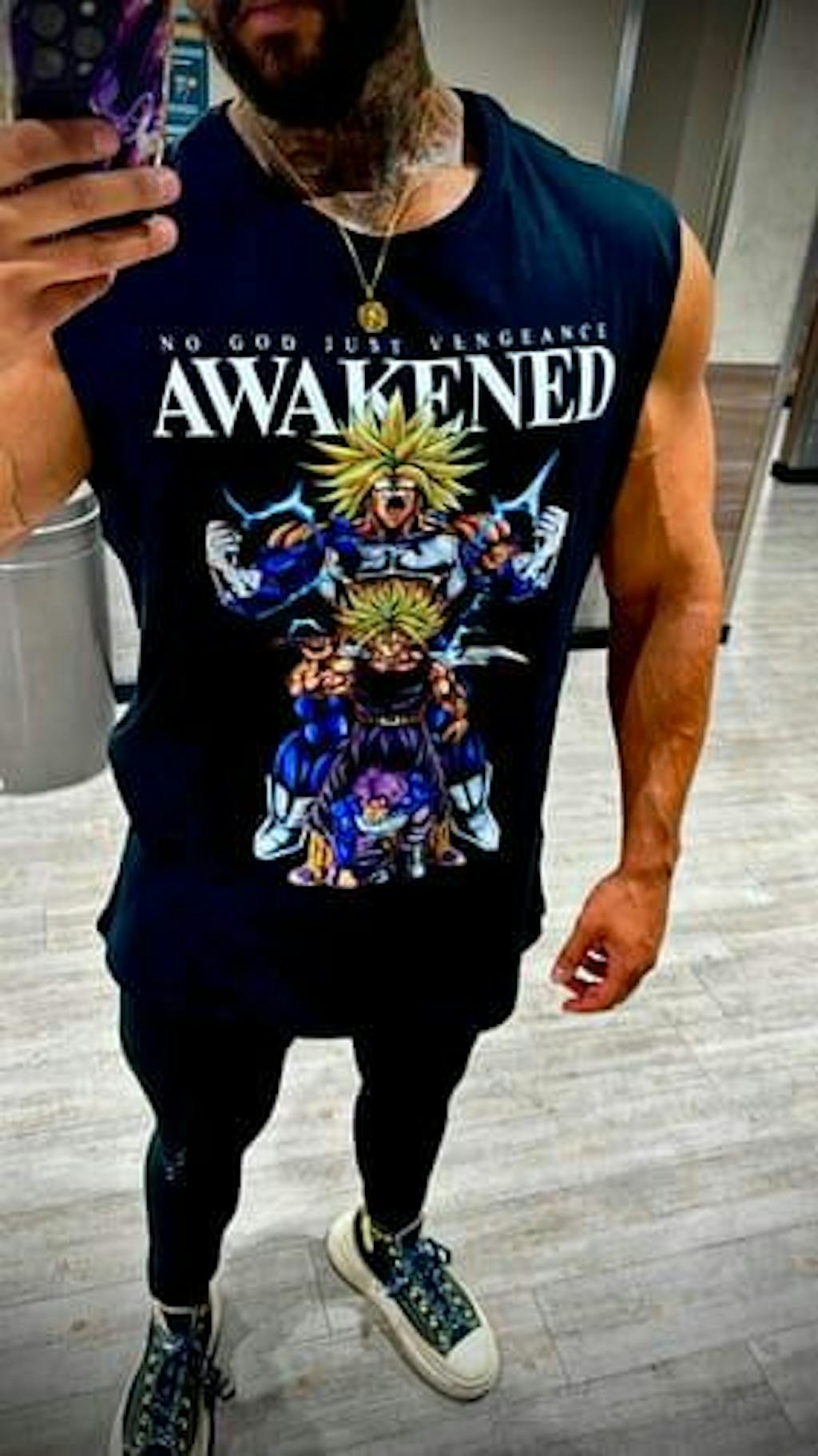 Kombiniert mit dem Slogan „No God, Just Vengeance – Awakened“ wirkt das Shirt nicht nur sportlich, sondern auch kraftvoll und motivierend💯!
